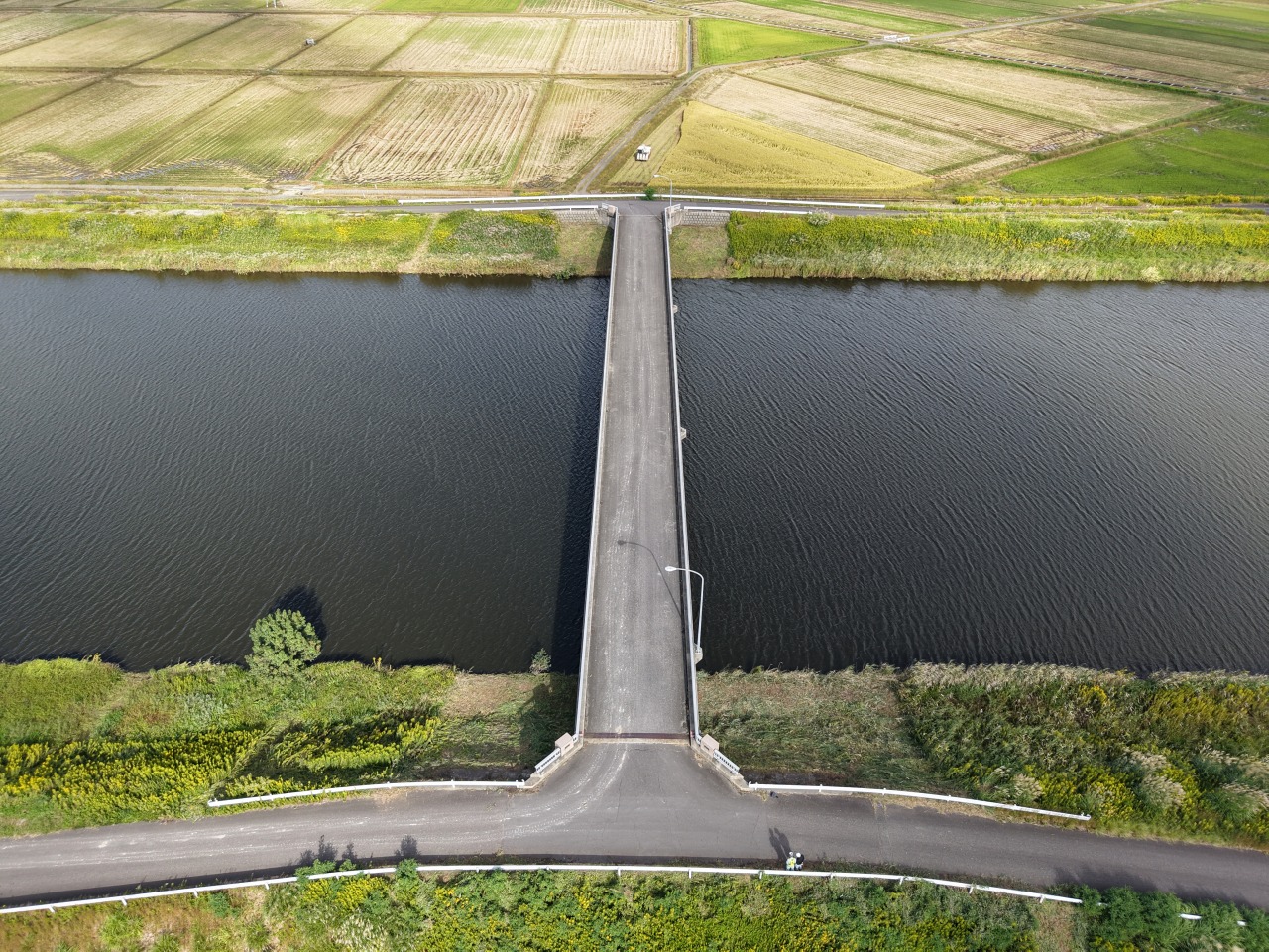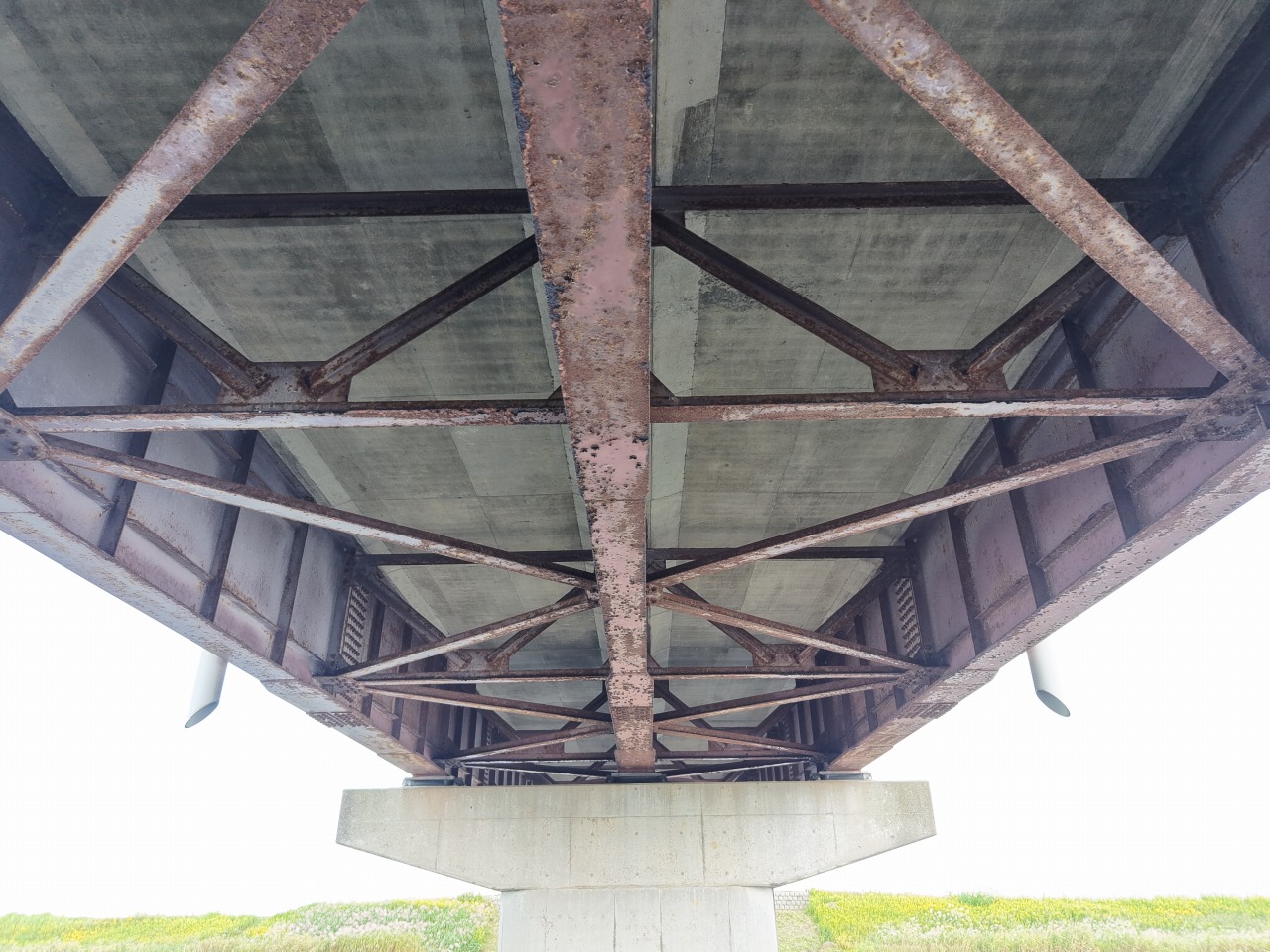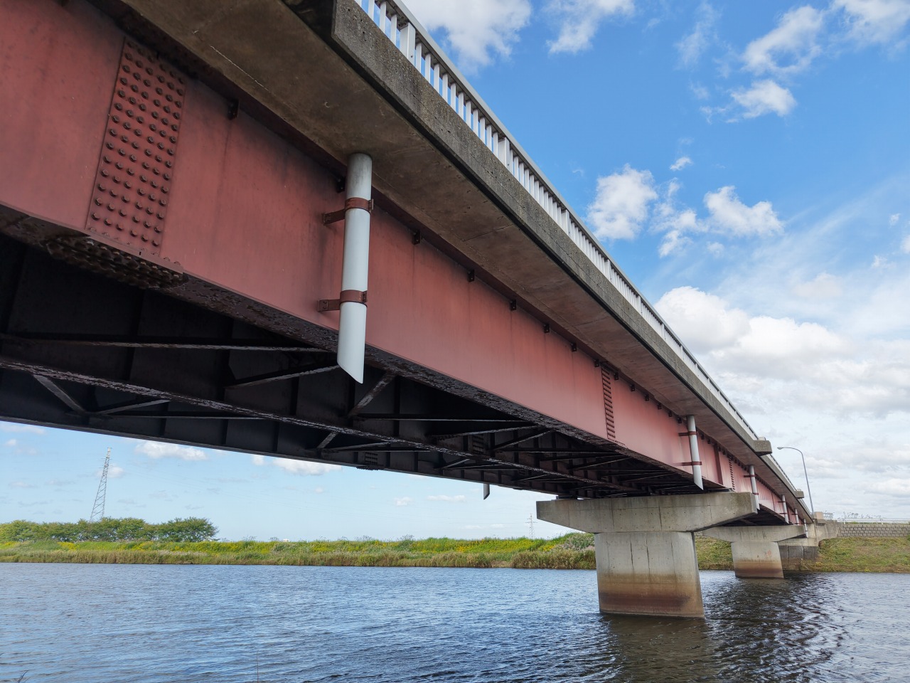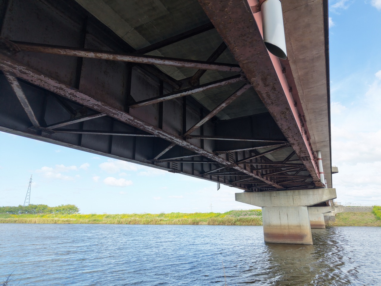 橋梁補修作業の為の足場を設置しています。 順調に足場が出来上がっています。